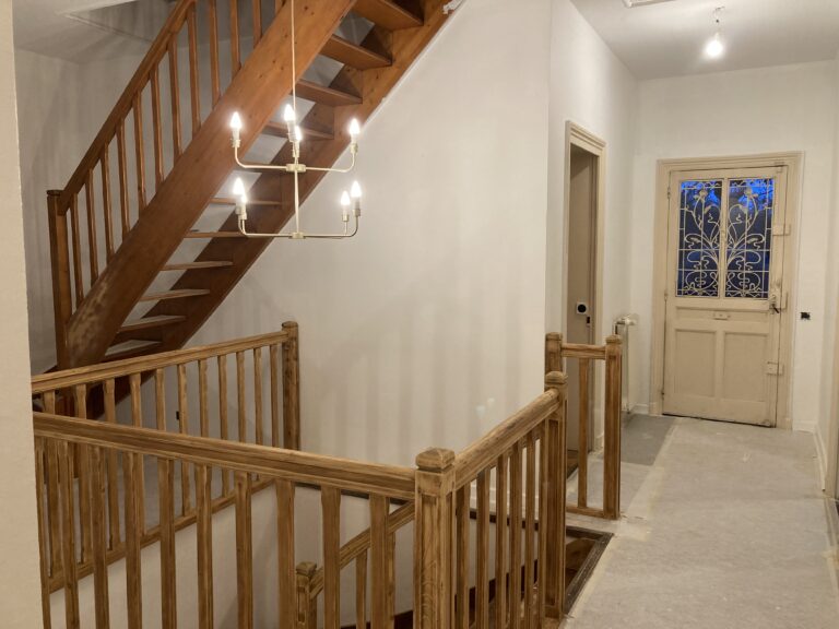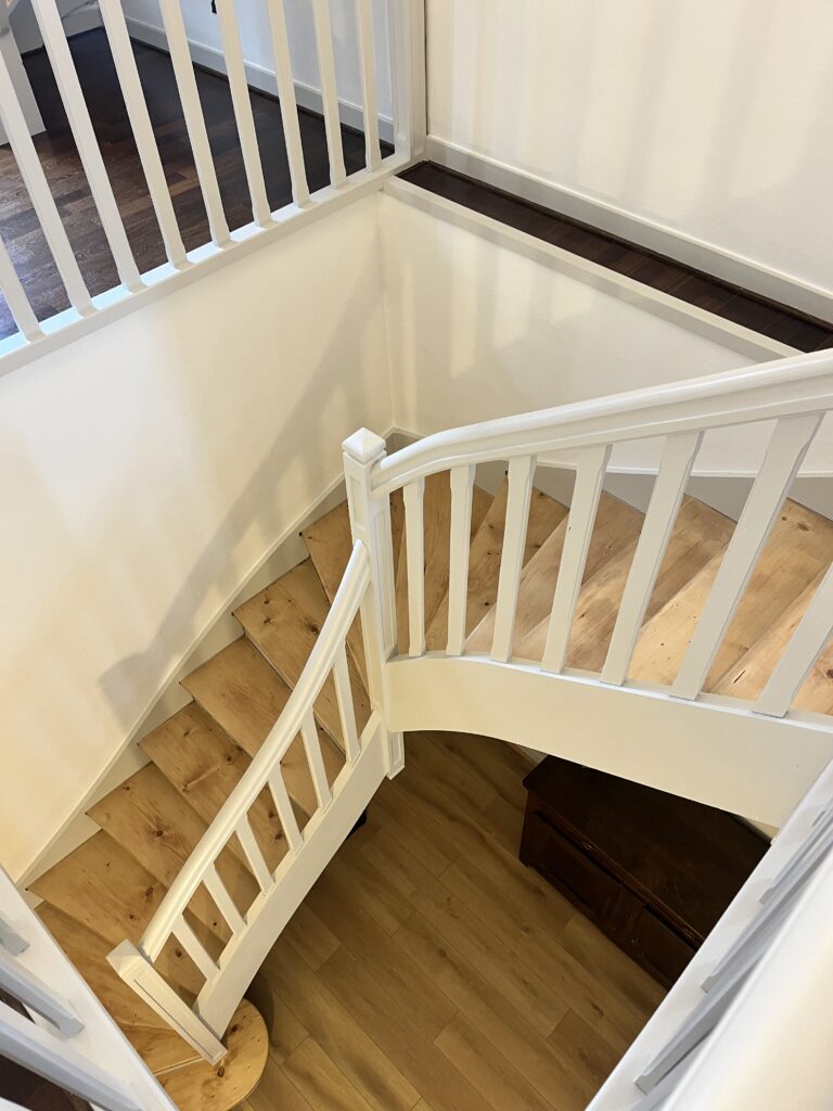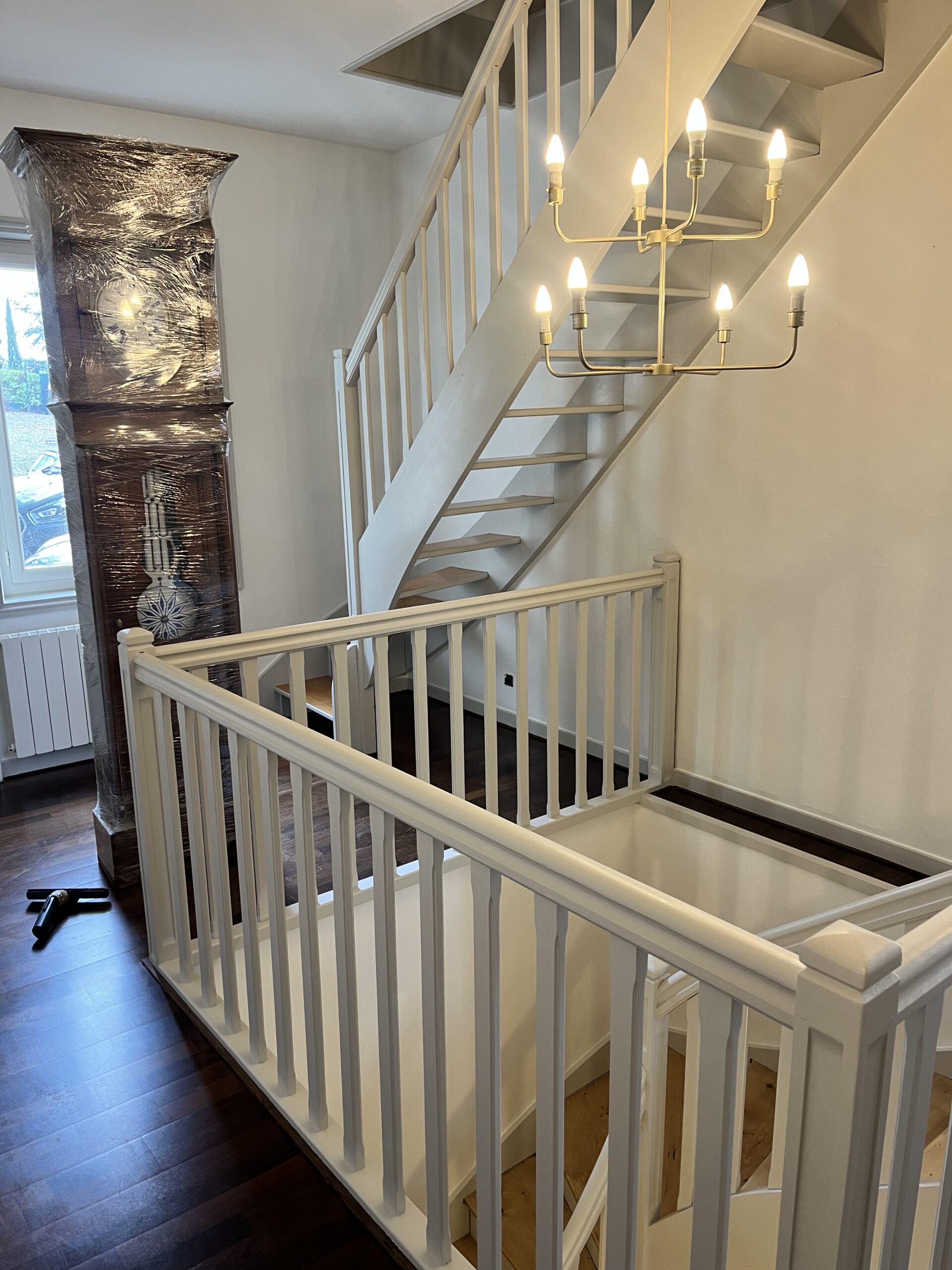 Pour ce projet : ratissage parquet peinture vernis escalier